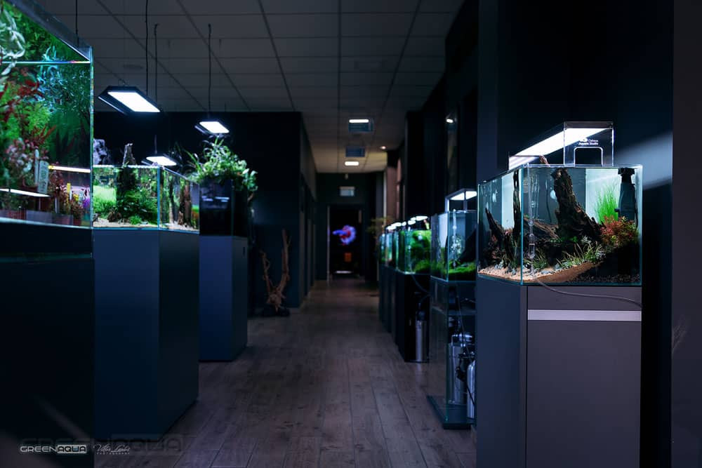 Az első dolog, ami szemet szúr, az az akváriumok kristálytisztasága. A víz olyan tiszta, hogy ha nem tudnád, hogy ez egy akvárium, észre sem vennéd a vizet. Miután túl vagy az első sokkon, elkezded megfigyelni a részleteket, és számtalan új építési és alkalmazási technikát fedezhetsz fel.